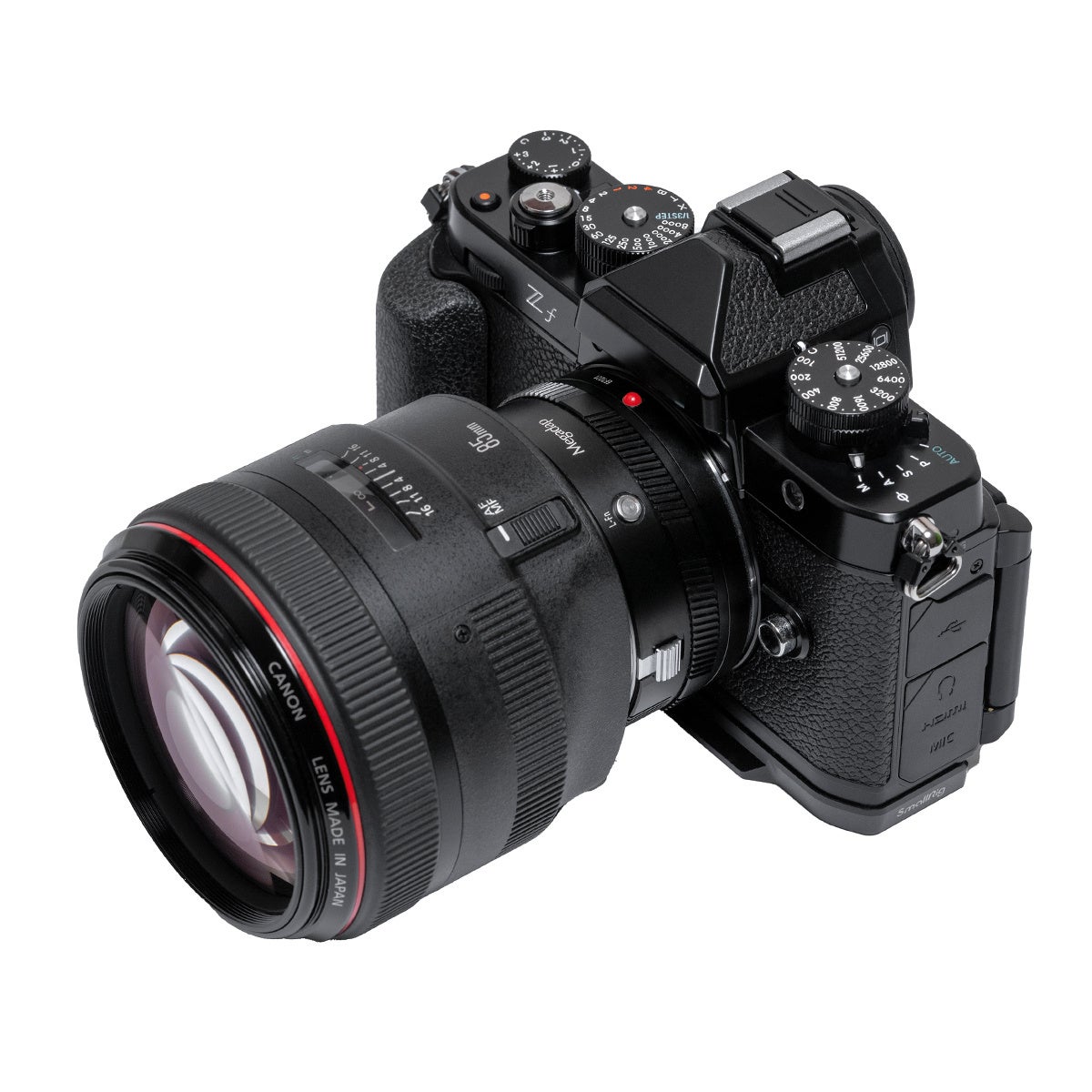 Megadap(メガダプ)EFTZ21 は、キヤノンEFマウントレンズをニコンZマウントカメラに装着するための電子マウントアダプターです。高度なオートフォーカス機能や手振れ補正機構に対応し、直感的に操作できるコントロールリングとL-Fnボタンにより、迅速な設定変更が可能です。