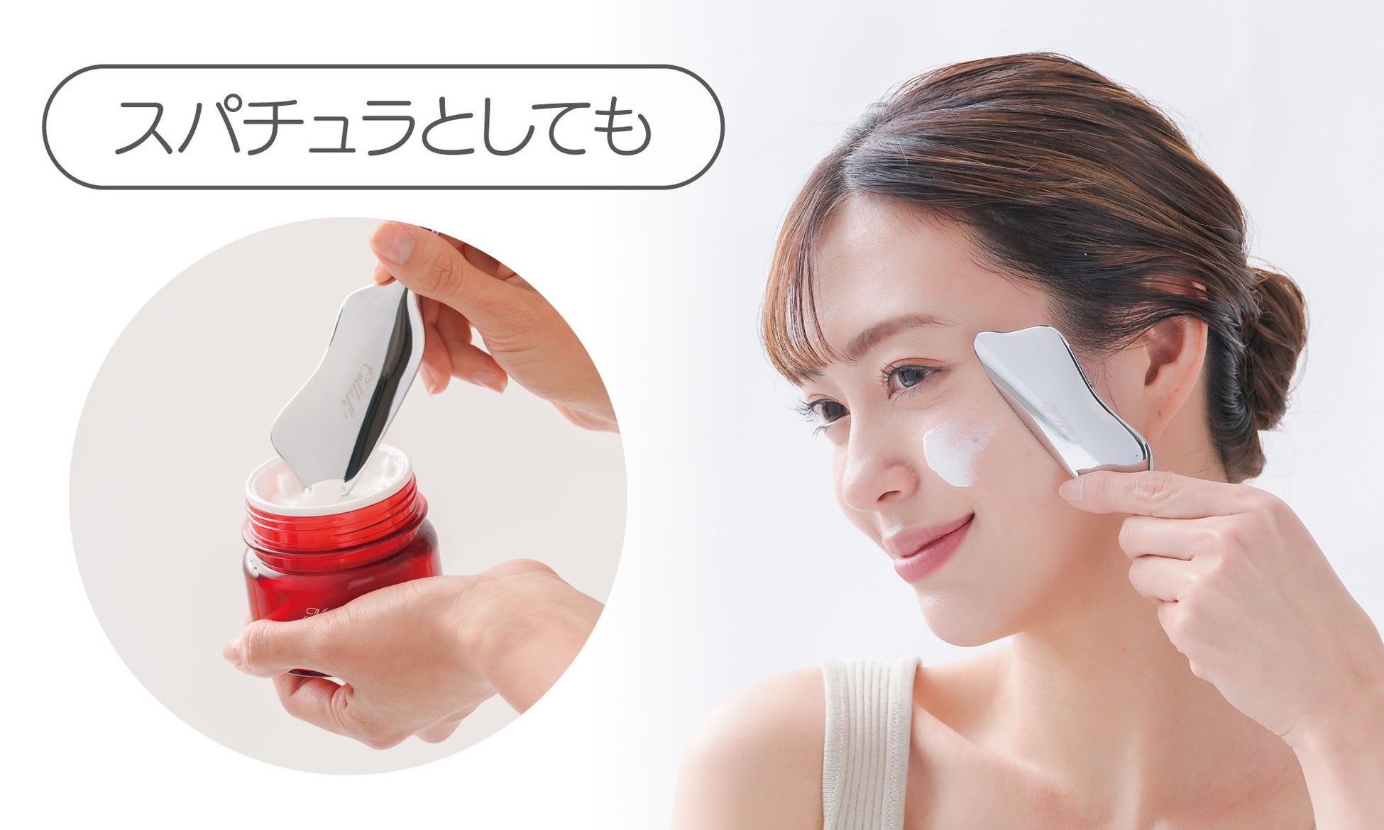 ストレートラインは、クリームやジェルをすくうスパチュラとしても大活躍。衛生的でムダなく使え、毎日のスキンケアを清潔に。