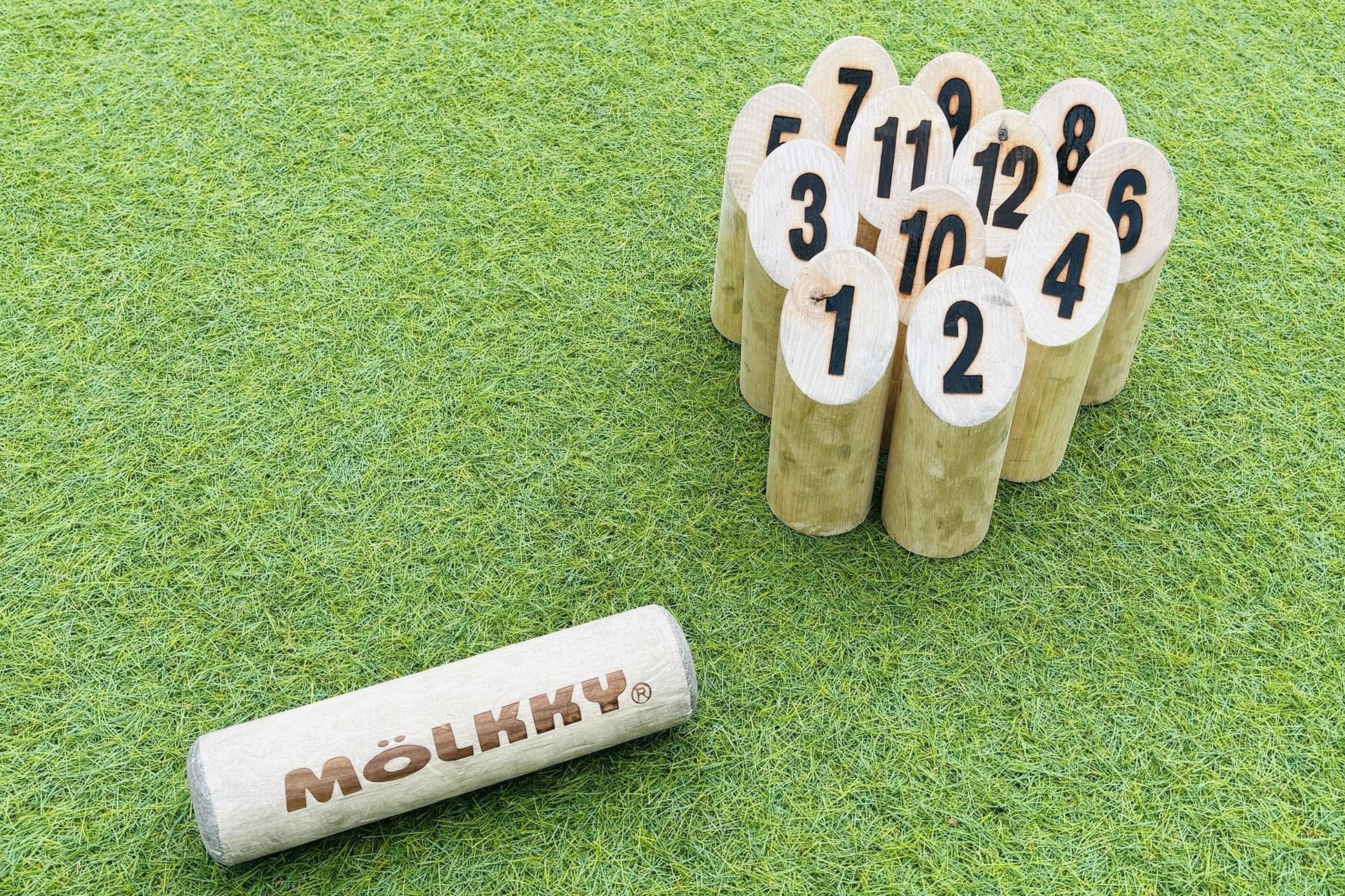 モルックとは、フィンランド発祥のスポーツで、木の棒(モルック)を投げて、数字の書かれた木の棒(スキットル)を倒し、得点を競うゲームです。