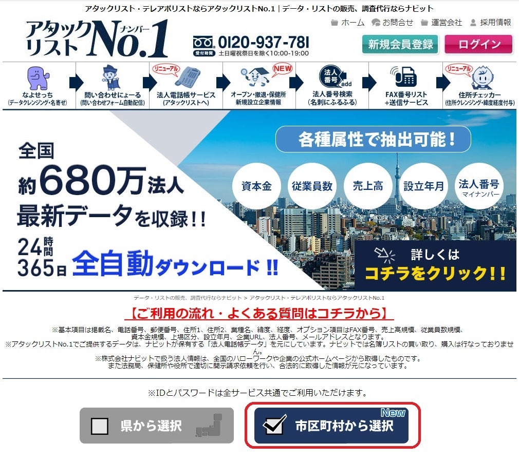 株式会社ナビットは、2022年7月12日(火)に、大人気の全自動サービス「アタックリストNo.1」が「市区町村」まで検索できるようになりましたので、ご案内させていただきます。