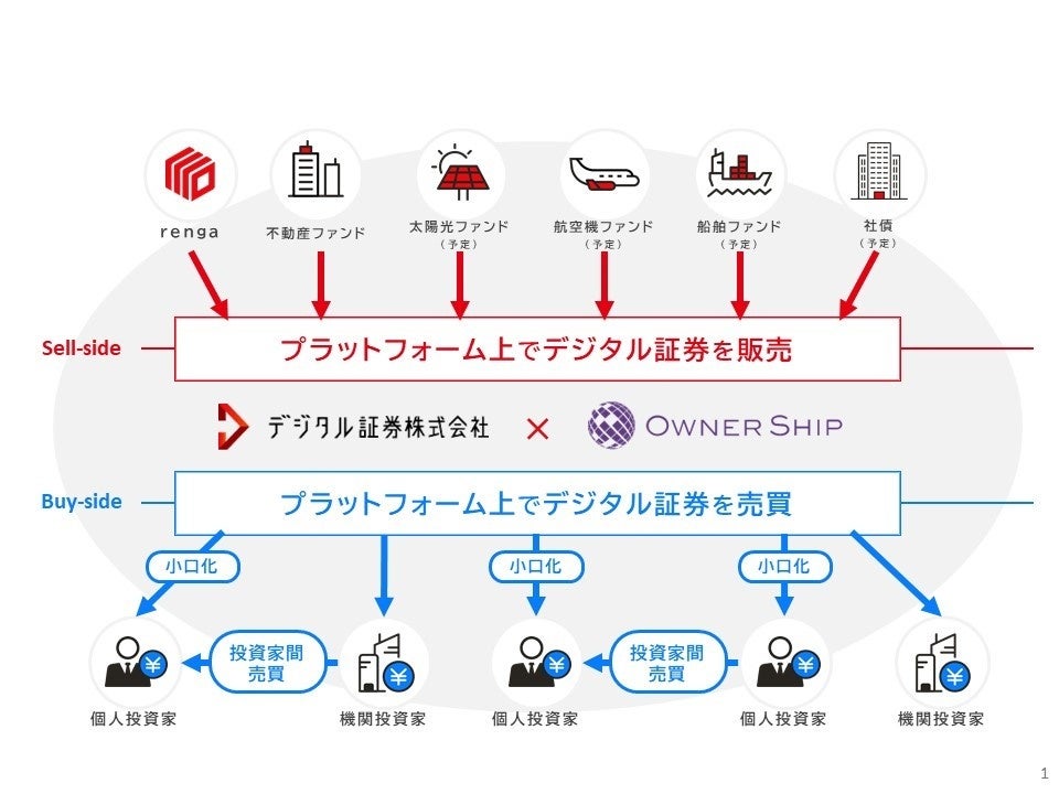 DS社およびDS社の子会社でシステム開発を担うオーナーシップ株式会社(以下、「OS社」)は、これまで銀行や保険会社などの適格機関投資家(※3)向け不動産STOファンドの組成・運営に関わってきました。OS社が開発・運用するSTOプラットフォーム「OwnerShip」で発行されたデジタル証券の取り扱い金額は、2024年12月末日時点で約235億円まで拡大しています(※4)。今後、DS社は金融商品取引業者として、STOファンドの組成から販売、各投資家間売買(二次流通)に至るまでの一連のサービスを、プラットフォームを通じて一気通貫で提供していく予定です。