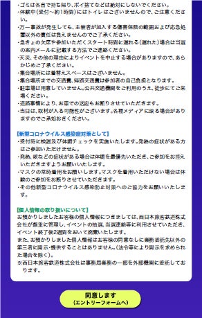 実施概要や注意事項をよくお読みいただき、ご同意いただける場合は画面下部の「同意します(エントリーフォームへ)」ボタンを押して次に進む