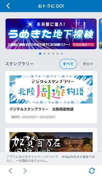 画面上部に表示されるバナーの中から「うめきた地下探検」を選択