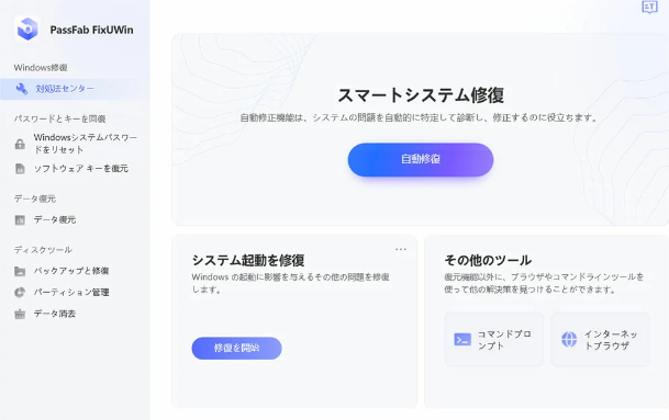 典型的な原因を紹介しましたが、初心者が実際自分のエラーの原因を特定するのは大変困難かと思います。そんな時にはエラーを解消できる専門ツールに頼ることが問題解決の近道かもしれません。ここでは、専門ツールPassFab FixUWinとその使用方法をご紹介します。