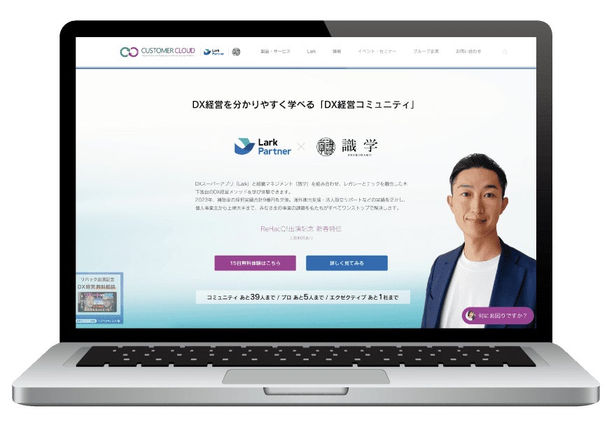 Lark公式パートナーおよび100万部(三部作)突破で話題の「識学」代理店として知られるカスタマークラウドは、独自のDX経営マネジメントメソッドで、経営課題の解決とDX変革をサポートしています。