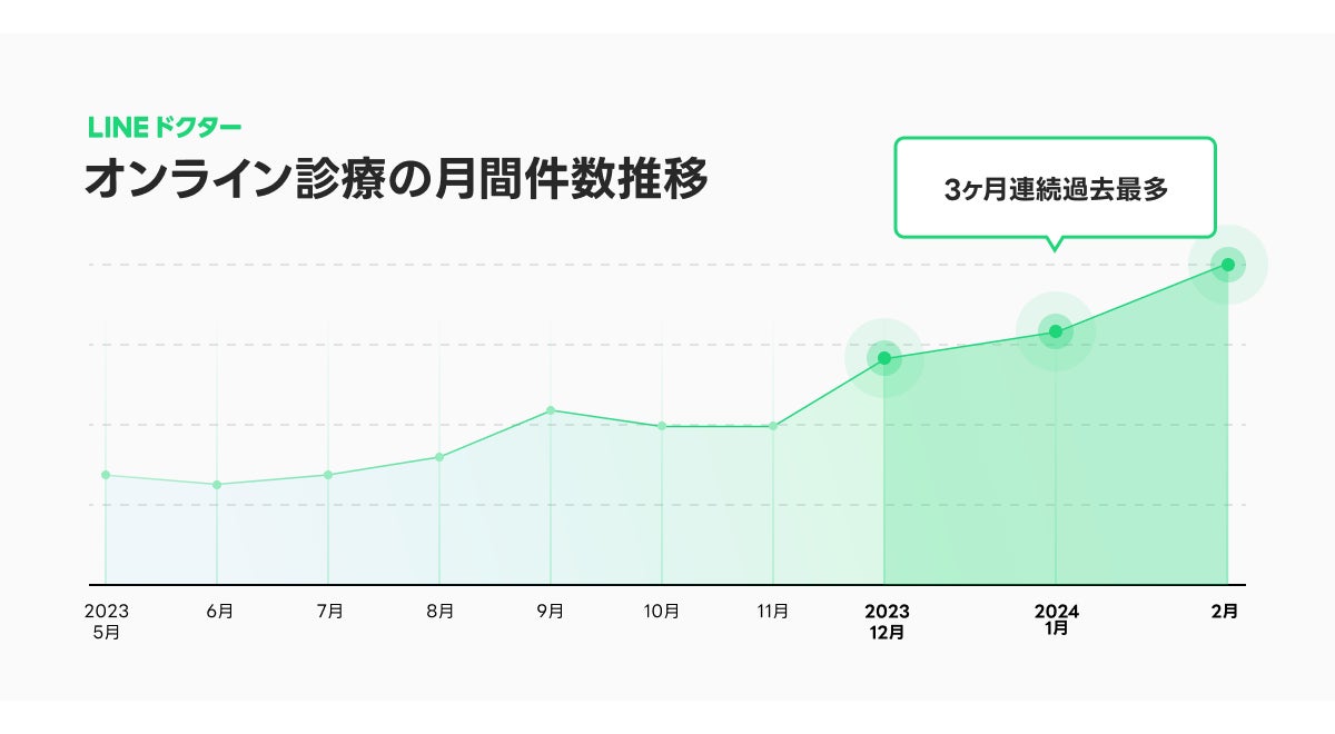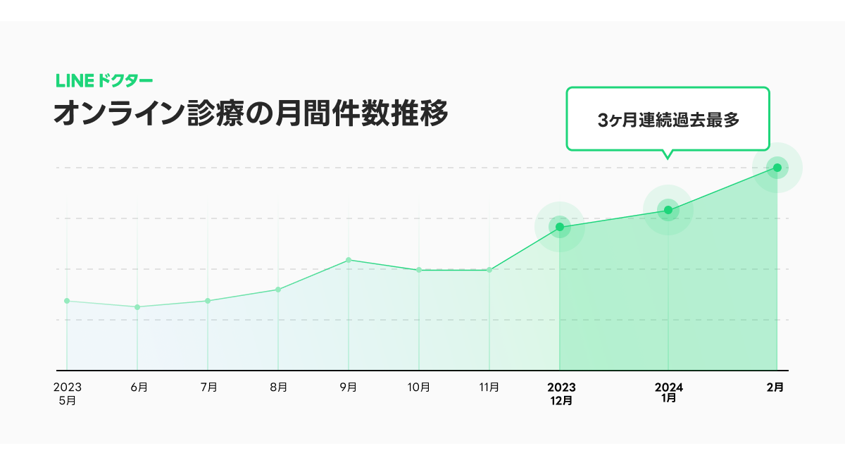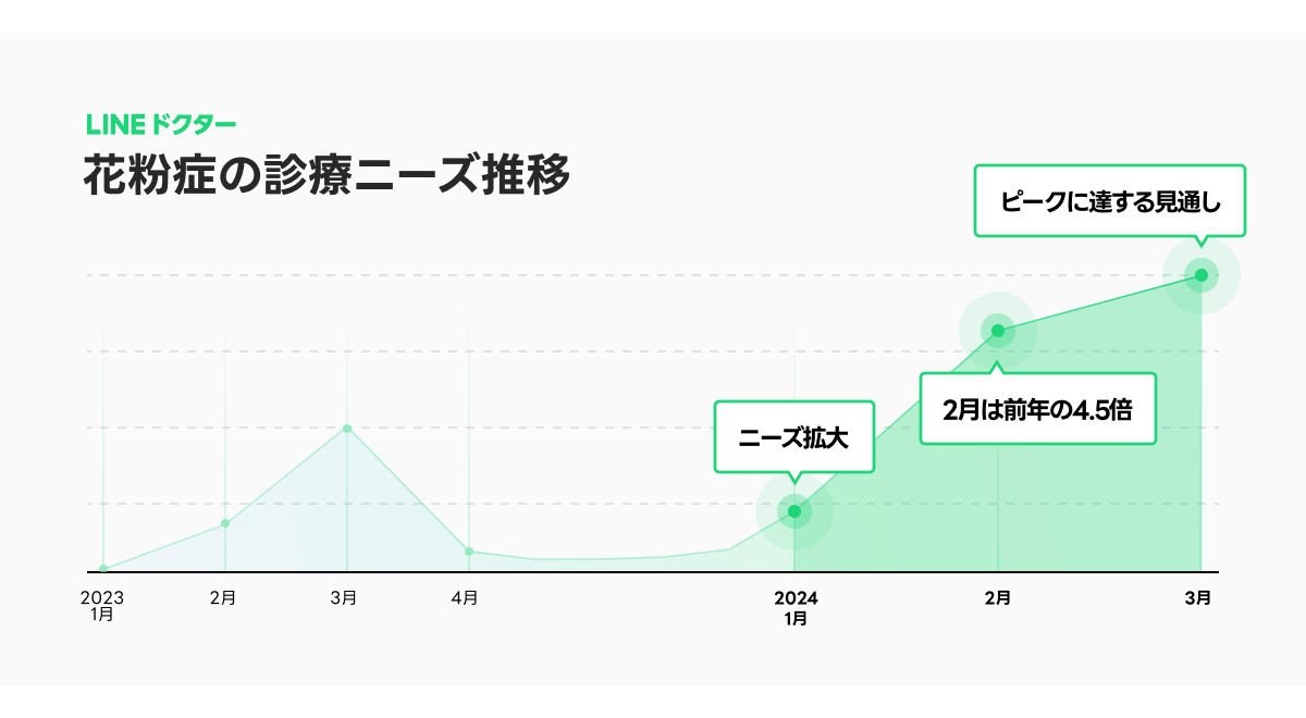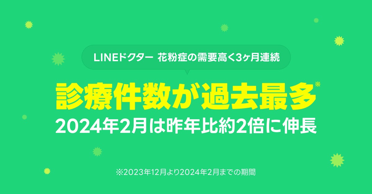 オンライン診療「LINEドクター」、花粉症診療の需要高く3か月連続で過去最多の診療件数を記録。2024年2月は昨年比約2倍に伸長