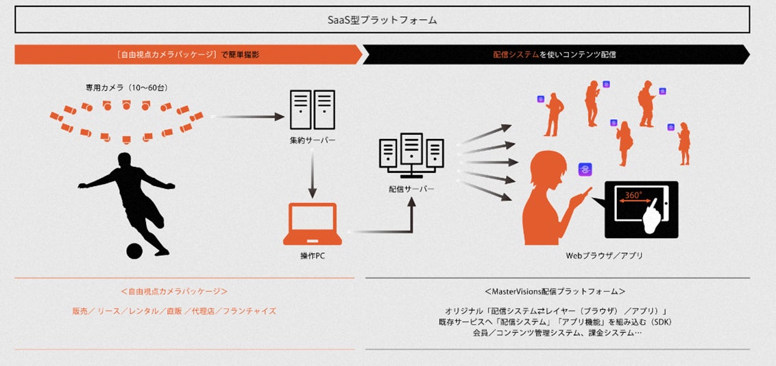 MasterVisionsは、視聴者がスマートフォンなどで360度視聴可能な自由視点映像の生成・配信サービスを展開しており、価格や実用性において高い競争力を有し、エンタメやスポーツなどの分野で活用されています。