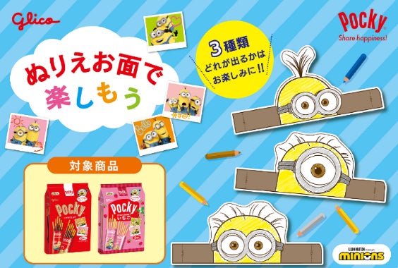さらに限定デザインパッケージの「ポッキー」小箱では、パッケージ裏面で「おさんぽBINGO®️-ポッキー-」を楽しむことができます。「おさんぽBINGO®」は、「いつものお出かけを、もっとたのしいお出かけに!」という考えから生まれた、移動式ビンゴゲームです。「ポッキー」を持ってよりみちをして、イラストと同じものを見つけたら一つずつ印を付けビンゴゲームを楽しむ時間を通じて、春の季節を感じる発見や、新しい気づき、会話のきっかけを創出します。また、大袋のホームユースでは、ミニオンのぬりえお面で遊ぶことができます。ぬりえお面作りを楽しんだり、ミニオンになりきって、外で写真を撮ったりして、よりみちの時間を盛り上げる企画です。