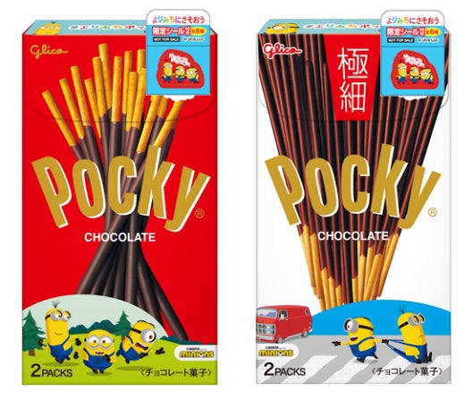 一部コンビニエンスストア限定で、「ミニオン」キャラクターの限定シールがついたポッキーチョコレート、ポッキー極細を発売します。シールの種類は全8種です。お気に入りのデザインのシールを見つけてみてください。