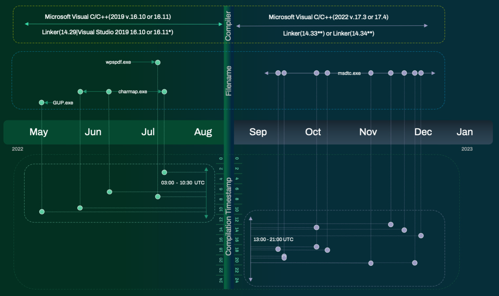 「私たちは、SILKLOADERが現在、Packer-as-a-Serviceプログラムを通じて直ちに使用可能な (off the shelf) ローダーとしてロシアのランサムウェアグループ内で共有されていると考えています。あるいは、Cobalt Strike/Infrastructure-as-a-Serviceを提供するグループ経由で、信頼のおけるサイバー攻撃者グループに配布されている可能性もあります。これまで、ランサムウェアのような攻撃の初期段階でのハンズオン侵入の際にこれらが観測されていました。それらのグループの多くは、ランサムウェア犯罪集団として名をはせ、活動を終了したと考えられている『Conti』グループと直接または間接的に密接な協力関係を持っていたものと考えられます。」
