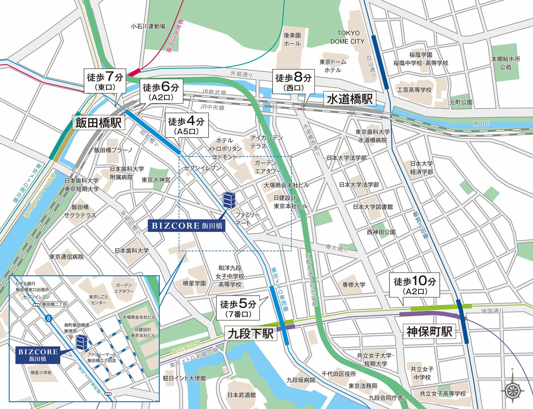 ・各線「飯田橋」駅、「九段下」駅等4駅8路線の利用が可能なマルチアクセスで交通利便性の高い立地です。