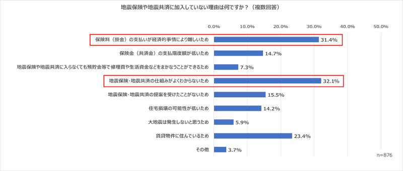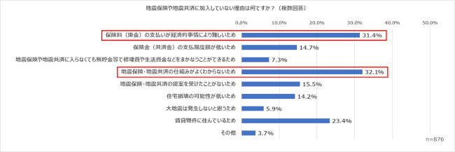 ■「地震保険/地震共済に加入していない」と回答した人(876名)の地震保険/地震共済に加入していない理由(複数回答)