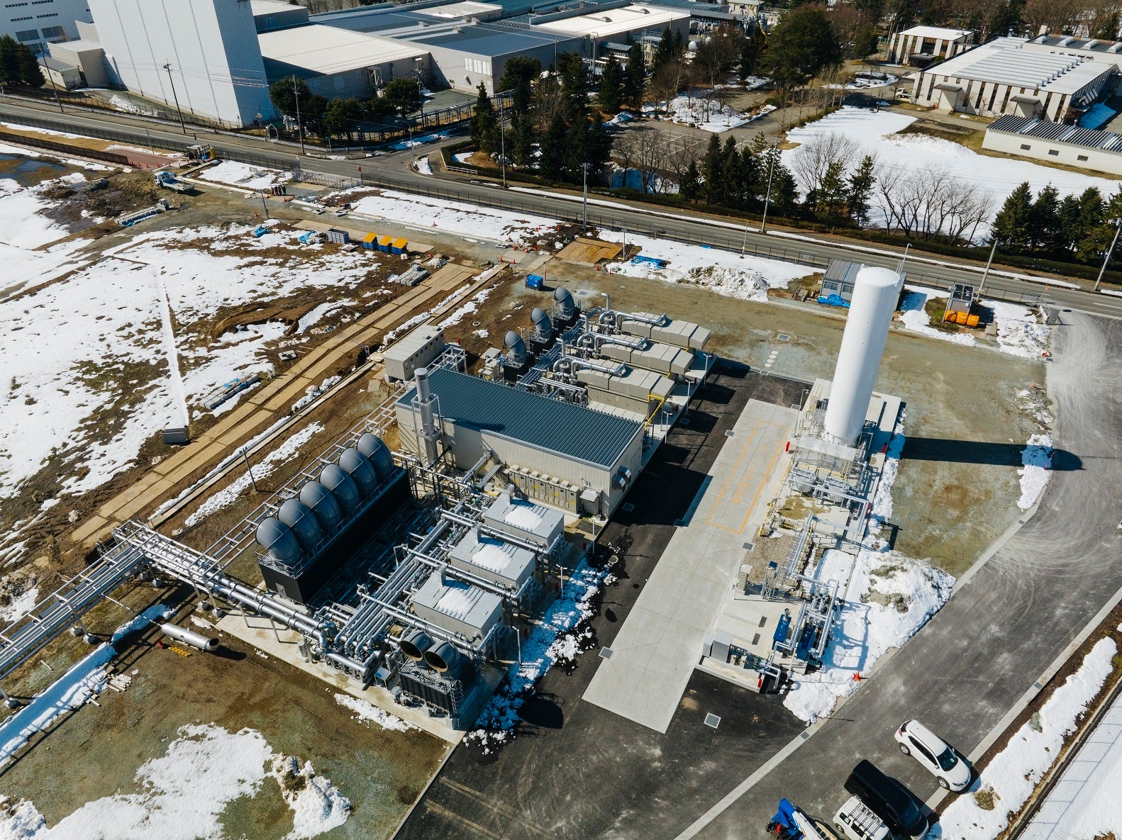 新しいエネルギーセンターは、液化天然ガス(LNG)を燃料とするコージェネレーションシステムや高効率ボイラー設備などから構成されています。従来の重油に代えてコージェネレーションシステムを用いることにより、高効率な発電を実現できるだけでなく、BIS山形工場のCO2排出量を年間最大約21%削減できる見込みです[1]。