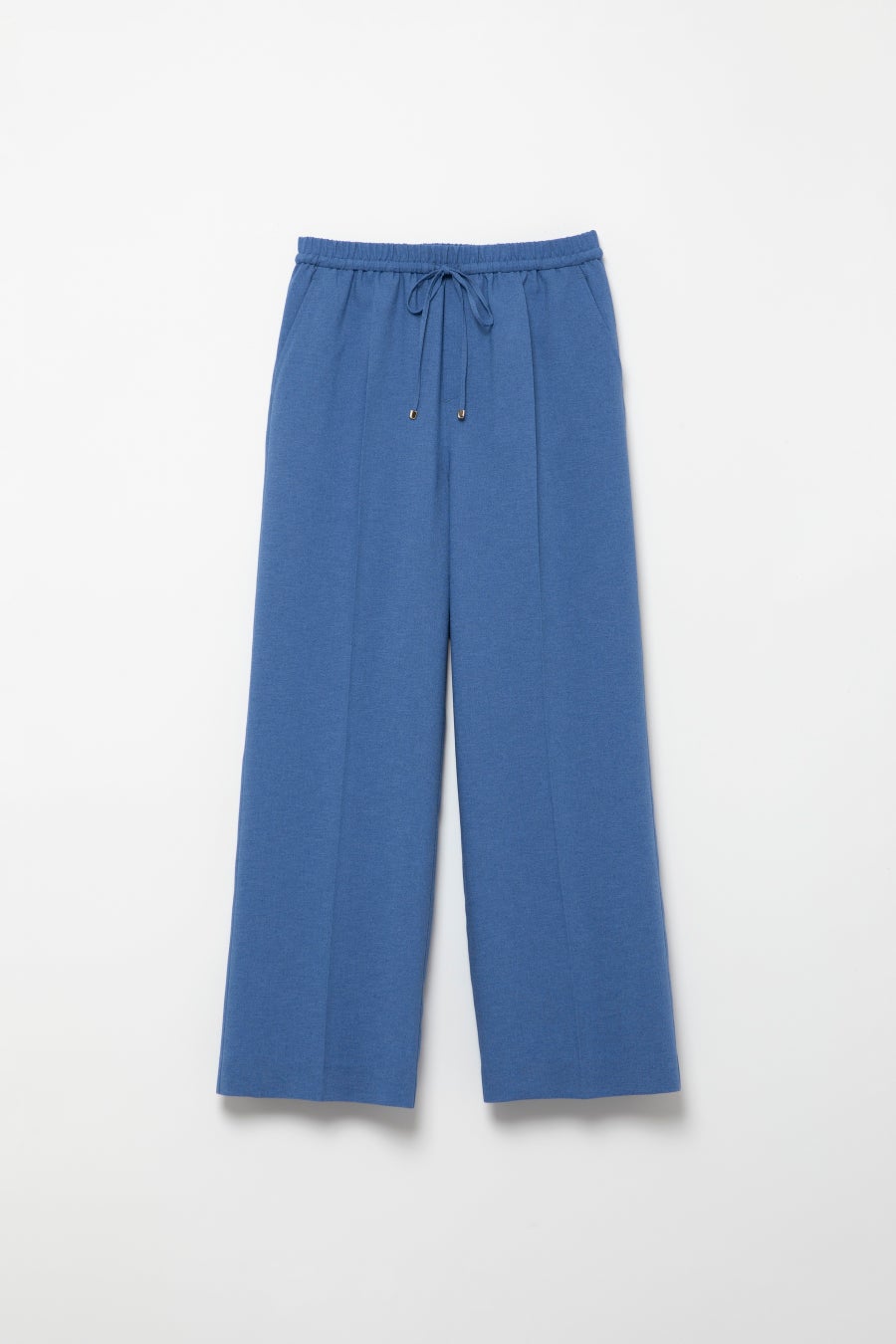 腰の位置を少し高めに設定し、美脚見えするよう仕上げたセミフレアシルエットパンツ。