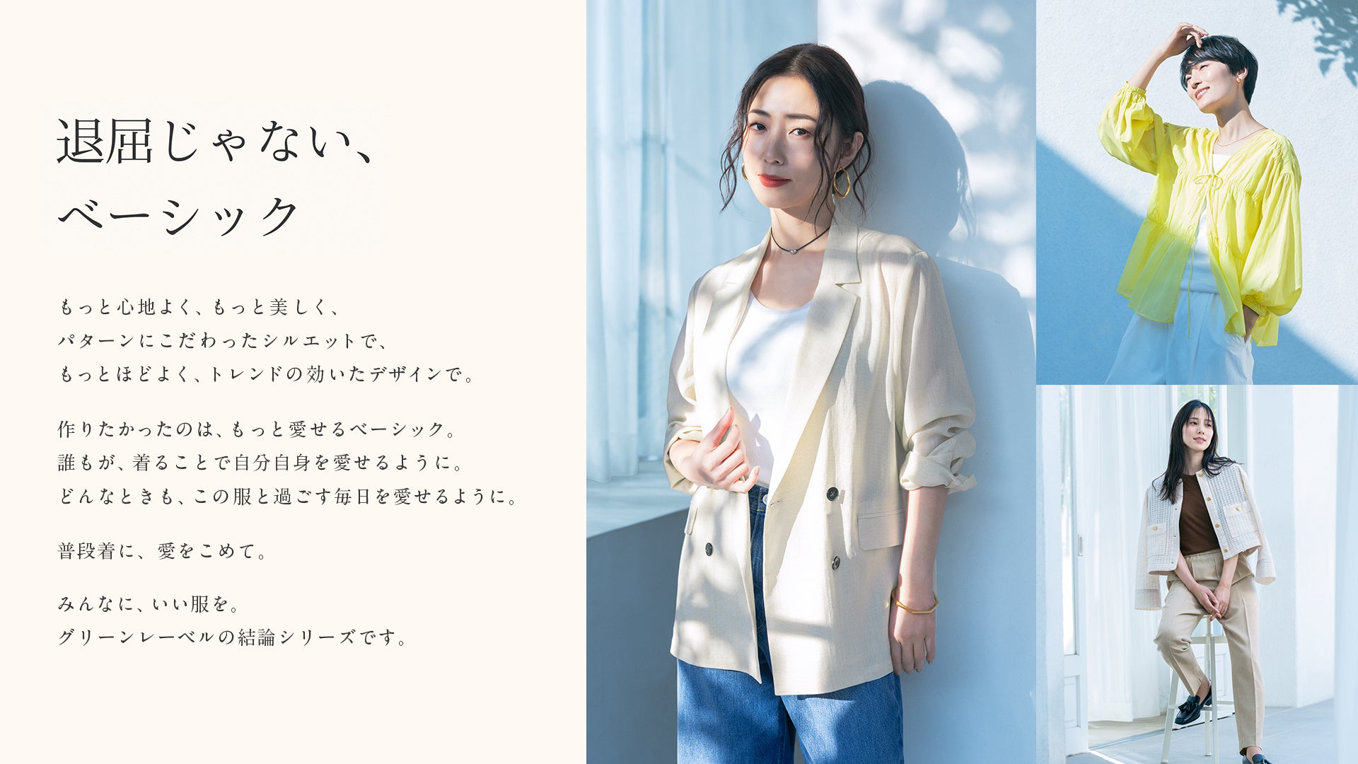 みんなに、いい服を。「グリーンレーベルの結論。」シリーズMEGUMIさんを起用した新ビジュアルを公開「シアーエアジャケット」など新作5型が登場