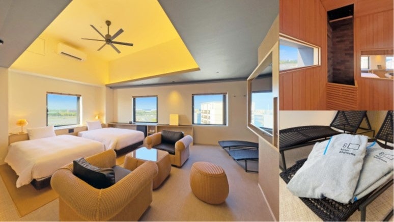 「ホテル・アンドルームス那覇ポート」では、ルーフトッププールからそのまま水着で入れる新感覚サウナや、プライベートな空間で楽しめる貸切個室サウナなど、大好評いただいている当ホテルのサウナ体験をさらに拡充させるべく、好きな時間に好きなだけ、心ゆくまでサウナをお楽しみいただける特別なお部屋をご用意いたしました。