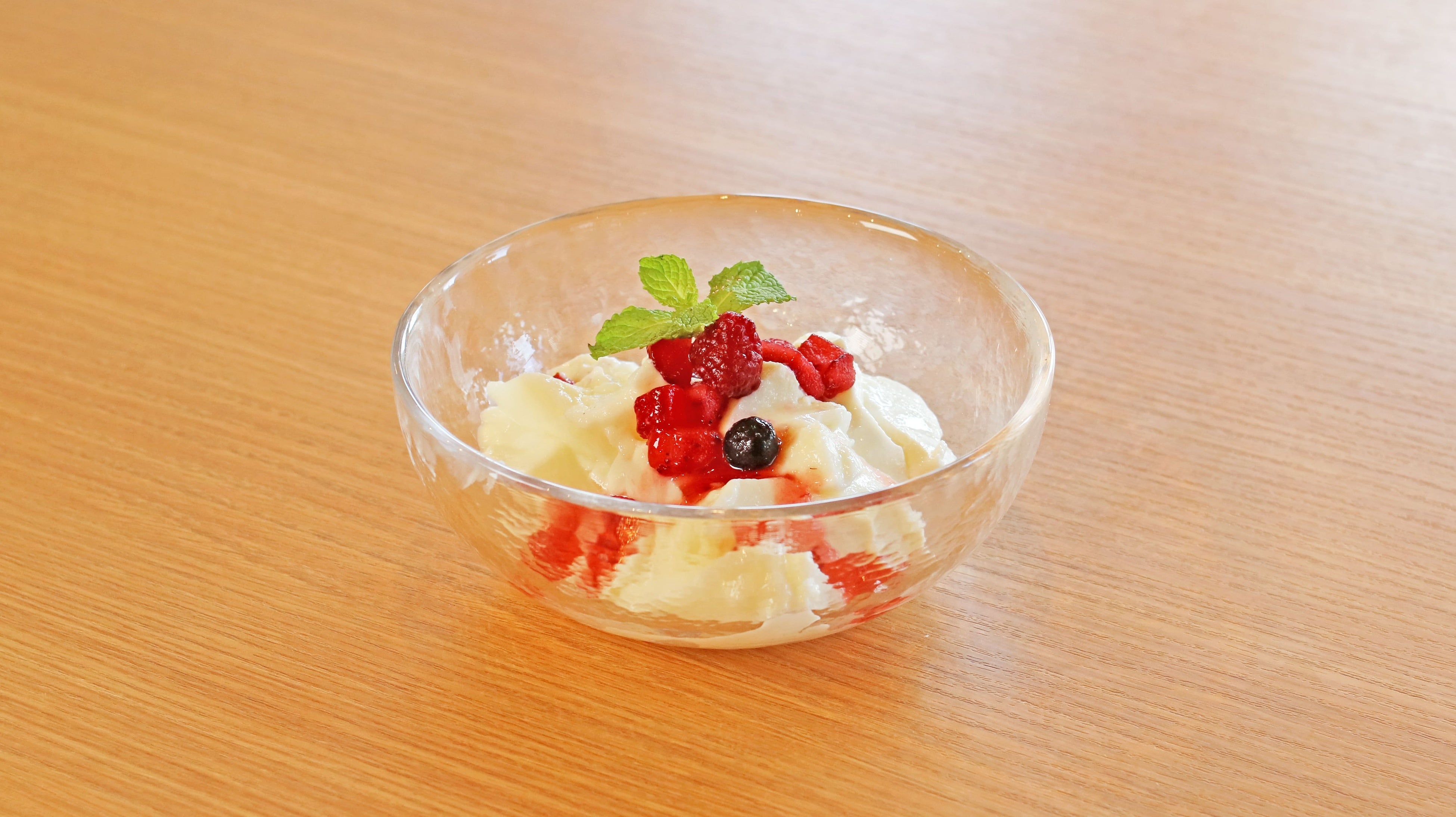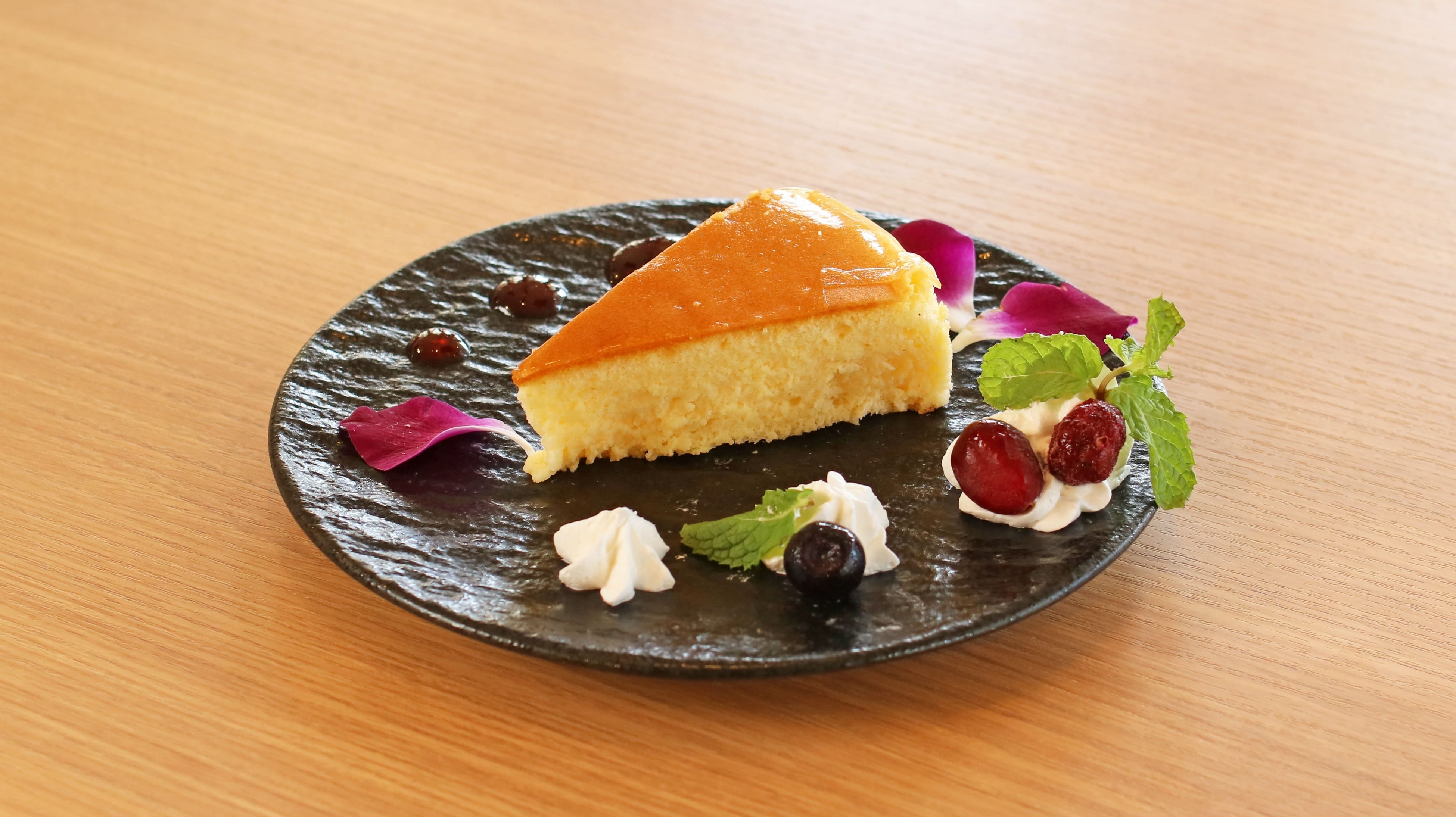 とろける口溶けの濃厚なチーズケーキにハイビスカスをアクセント。程よい甘さで、鼻から抜けるハイビスカスの香りが心地よいスイーツ。