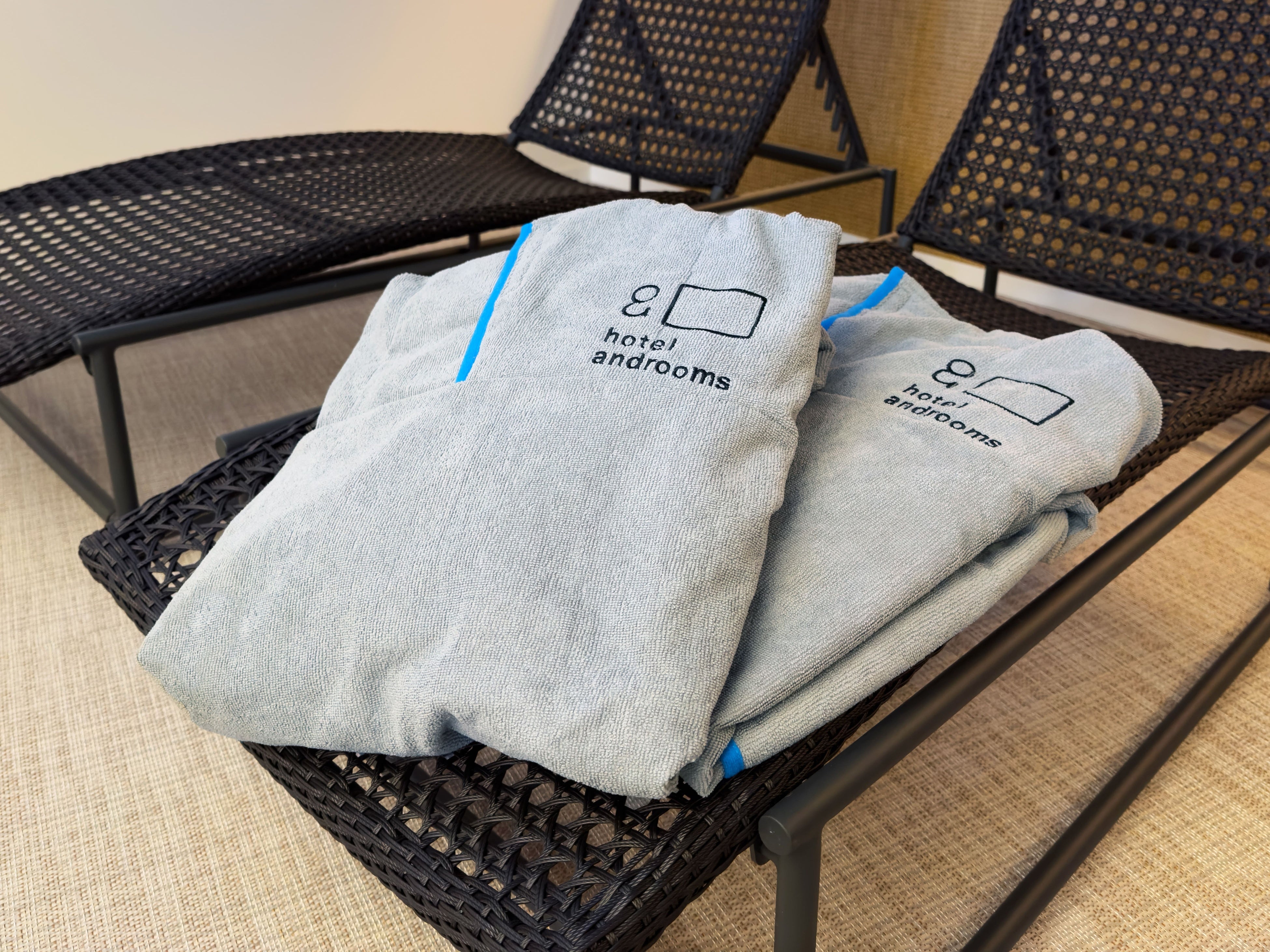 ●パイル地のここちよい肌さわりのオリジナルサウナウェア。