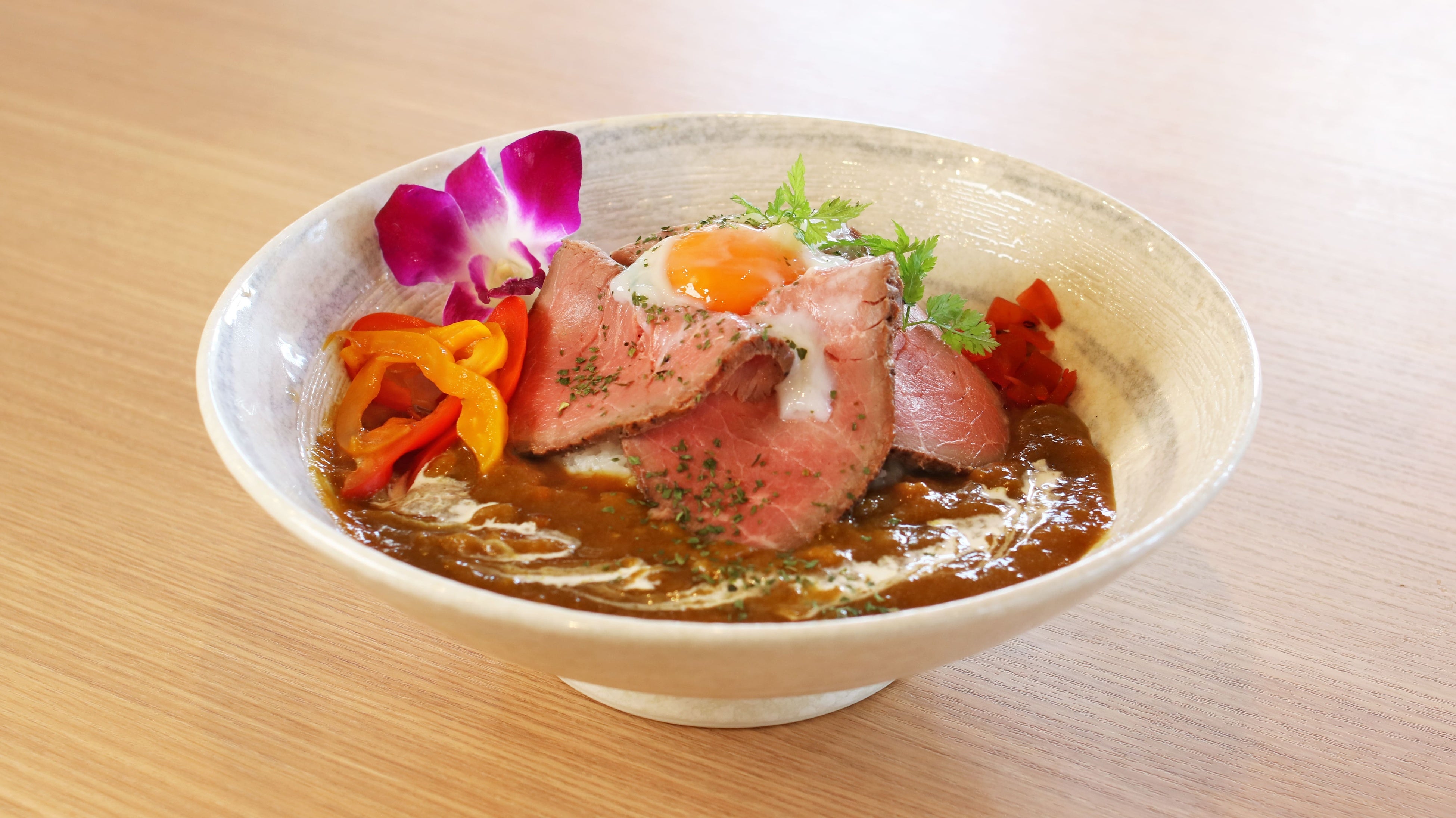 サ飯の王道といえば『カレー』。Blue Portオリジナルのカレーに、低温でじっくりと調理したローストビーフが楽しめる贅沢な1品。