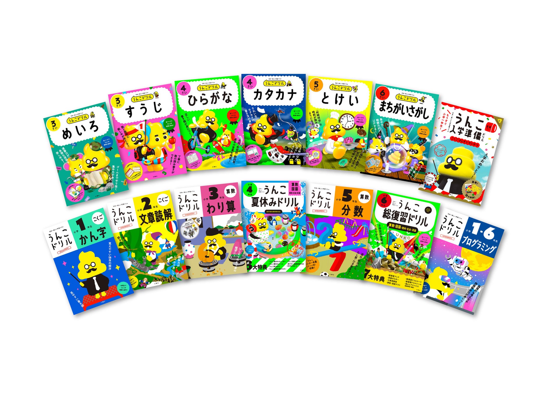 「うんこドリル」は、すべての問題と例⽂に「うんこ」を⼊れて作られた学習参考書です。勉強を「楽しいもの」に変え、⼦どもたちが勉強を「好きになる」よう、⼦どもたちの⽬線で考え、⼦どもたちの味⽅になることを最重要に思って作っています。2017年の初版「うんこ漢字ドリル」を発売後、算数や英語、プログラミングなど教科の領域を広げ、未就学児向けのドリルや中学⽣・⾼校⽣向け参考書も刊⾏しました。現在ではシリーズ発⾏1000万部を突破。⼦供向け学習ドリルの新定番になりつつあります。2019年にはウェブ上の教育プラットフォーム「うんこ学園」を公開。2020年より「⼦どもたちの⽣きるための学び」を軸に法⼈や⾃治体・官公庁とのタイアップによる学問の領域を超えた多様なテーマの啓発を⾏っています。啓発のツールとして冊⼦やウェブアプリ、動画などを展開しています。