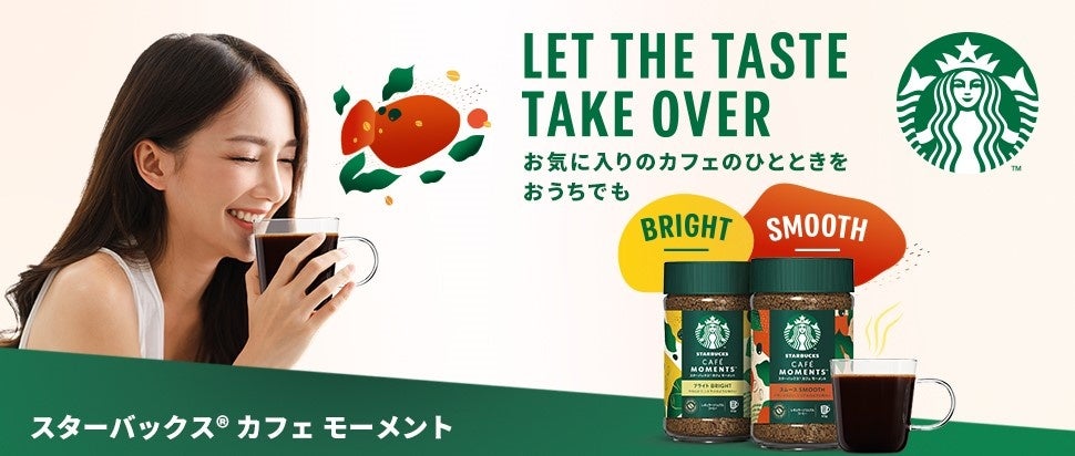 「スターバックス® カフェ モーメント」製品には、スターバックスでおなじみの中南米産のコーヒー豆のうち、ブラジル産とコロンビア産のコーヒー豆をブレンドして使用しました。また、気分やお好みにあわせて選べるように、バランスのよいシリアルのような味わいの「スムース」と、やわらかでシトラスのような味わいの「ブライト」の2種類を用意しました。スターバックス家庭用コーヒー製品では初の瓶入りタイプなので、飲むシーンにあわせて、複数杯いれたり、量を調整したりしたいときに便利です。ほんの少し立ち止まって、さっと簡単においしいコーヒーを楽しむことで、自分のペースを整えて「さあ次に進もう」と思いたい時におすすめの製品です。
