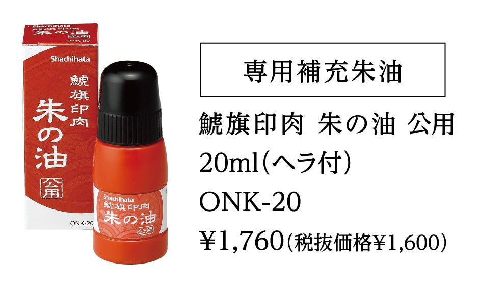 印影が薄くなりましたら、専用朱油(鯱旗印肉 朱の油 公用 ONK-20)の補充でくり返し使えます。