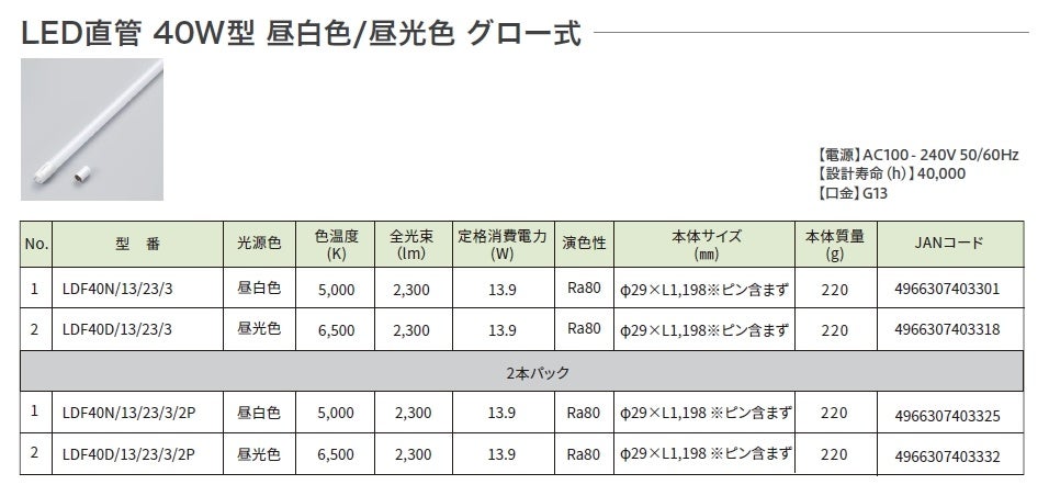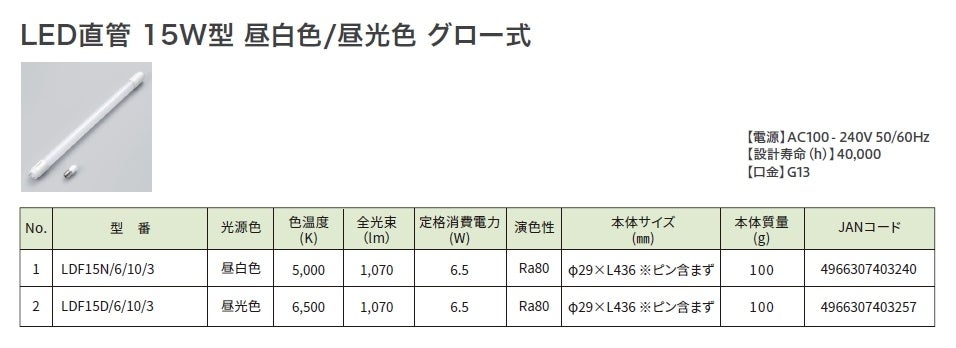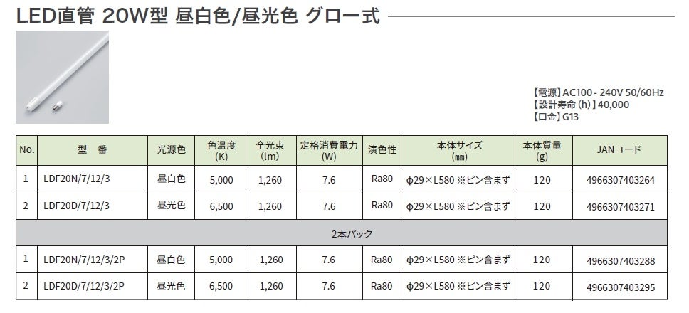 LED直管 グロー式を発売。