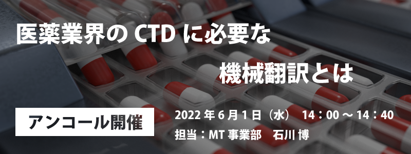 医薬業界のCTDに有用な自動翻訳とはというテーマで今回ウェビナーを開催いたします。
