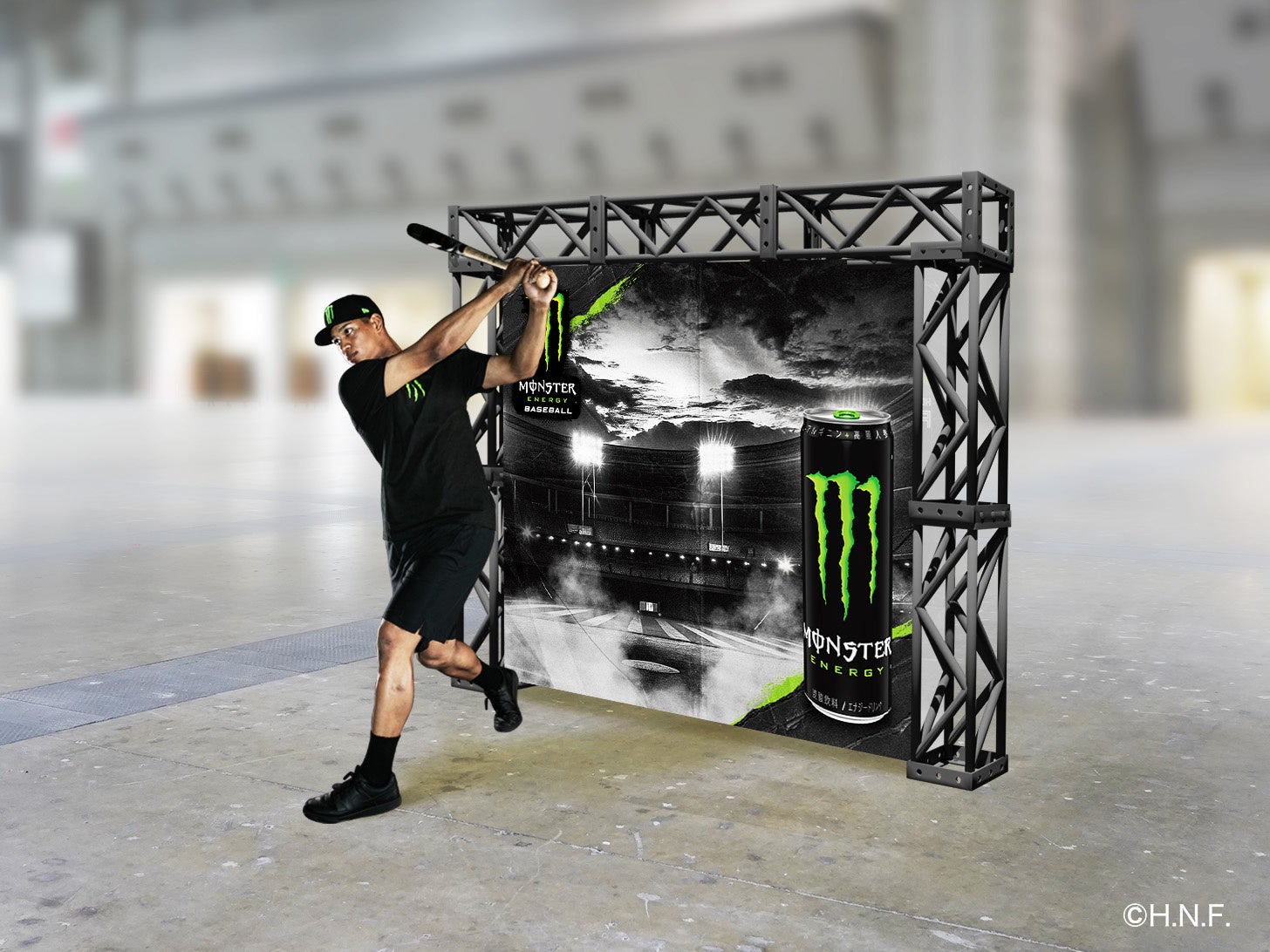 モンスターエナジーBASEBALLアスリート万波中正選手のサイン入りバット&ボールを手にして、「プロ気分」でバッティングやピッチングフォームの撮影体験ブースが登場。最高の一枚を撮影して、SNSに投稿しよう。投稿画面を提示すると、モンスターエナジーオリジナルステッカーをGET!