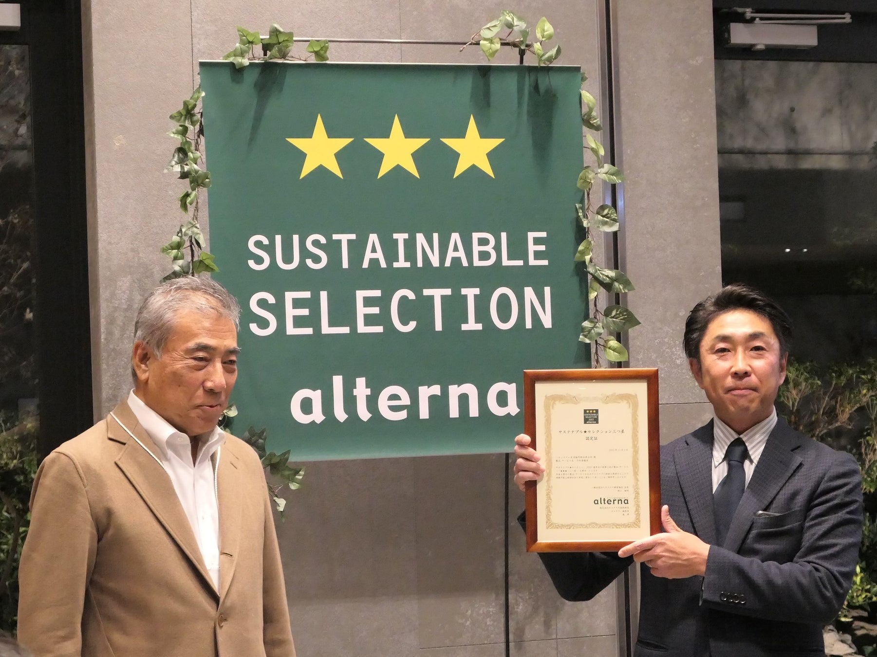認定証を授与した審査員の徳江倫明・一般社団法人フードトラストプロジェクト理事長は「事前に購入を予約し定期的に配送する『サステナビリティのサブスク』の先駆的なサービスです。すでに開始から30年近く継続しており、持続可能な農業の実現に貢献しています」と評価しました。