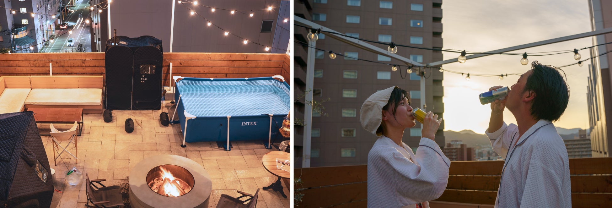 昨年開催した際は、3日間の限定イベントにも関わらずリピーターを出すほど好評だったサウナイベント「UNWIND ”totonoi” Rooftop」。当ホテルの大きな特徴でもあるルーフトップの大きな焚火を囲み、札幌の中心で「ロッジのような非日常感」に浸りながらいつもとは異なるサウナ体験をしていただけます。春のやわらかい空気を感じながら水風呂や外気浴を行った後は焚火で暖をとり、揺らぐ火をながめながら「ととのいタイム」をご堪能いただけます。サウナが好きな方はもちろん、サウナデビューをしたい方、気心知れたご友人との思い出作り、いつもとは違うデートに、是非お気軽にご参加ください。
