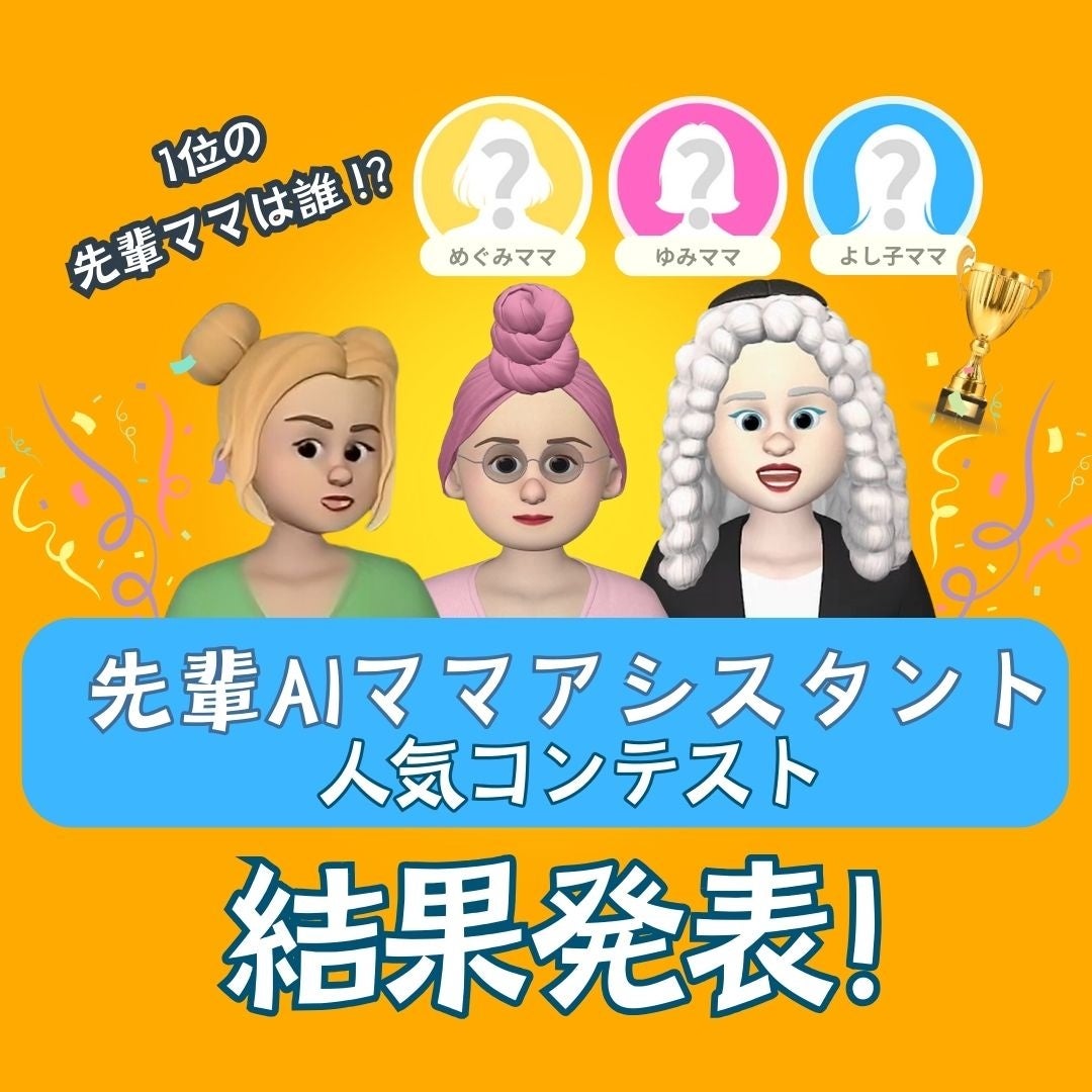 この3人の先輩AIママ アシスタントとのやりとりを実際に体験し、最もお気に入りになった先輩AIママに投票していただいた今回のコンテスト。