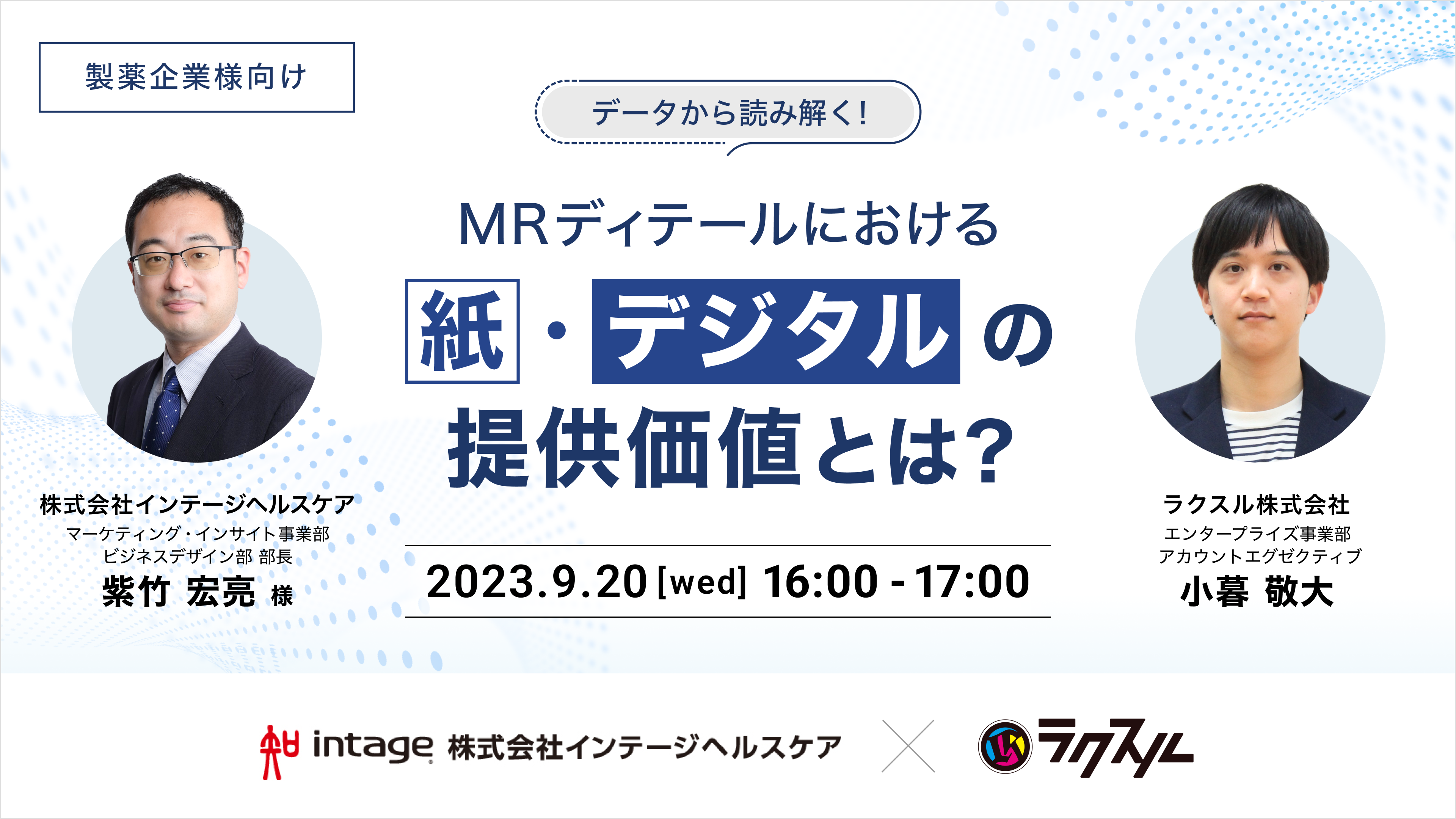 【2023年9月20日(水)インテージヘルスケア×ラクスル共催セミナー】データから読み解く!MRディテールにおける紙・デジタルの提供価値とは?