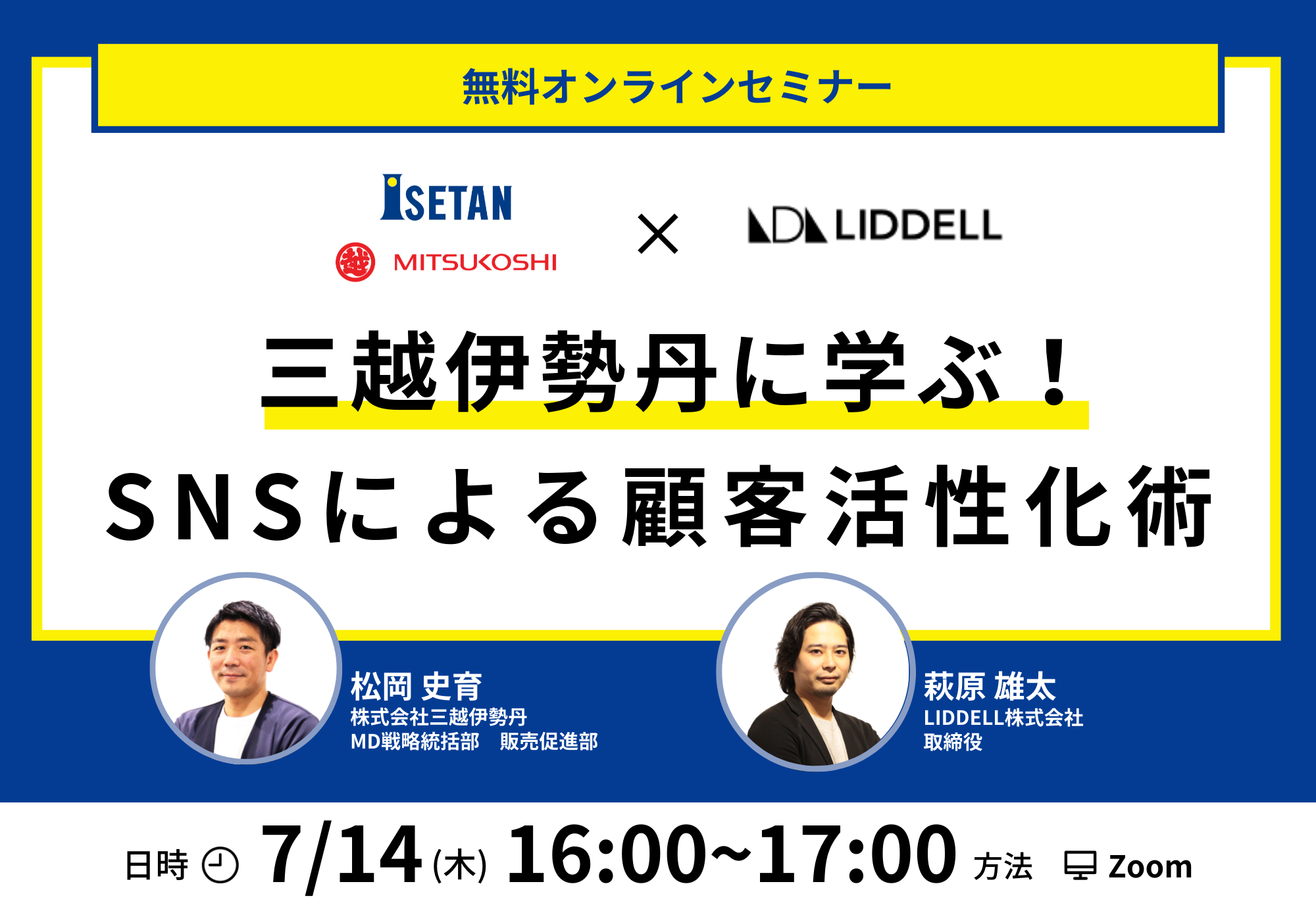 【無料セミナー】三越伊勢丹がゲスト登壇!「三越伊勢丹に学ぶ!SNSによる顧客活性化術」を7/14 16:00~17:00開催