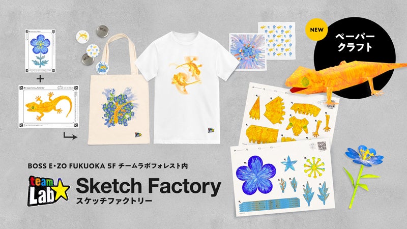 4月26日(土)より、BOSS E・ZO FUKUOKA 5F「チームラボフォレスト 福岡 – SBI証券」では、「スケッチファクトリー」に新たなプロダクトとして「ペーパークラフト」が加わります。《鼓動する谷のグラフィティネイチャー》で描いた生き物を、世界に一つだけのペーパークラフトにして持ち帰ることができます。