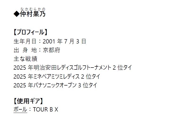 仲村果乃 ブリヂストンゴルフのボールで国内女子ツアー初優勝!
