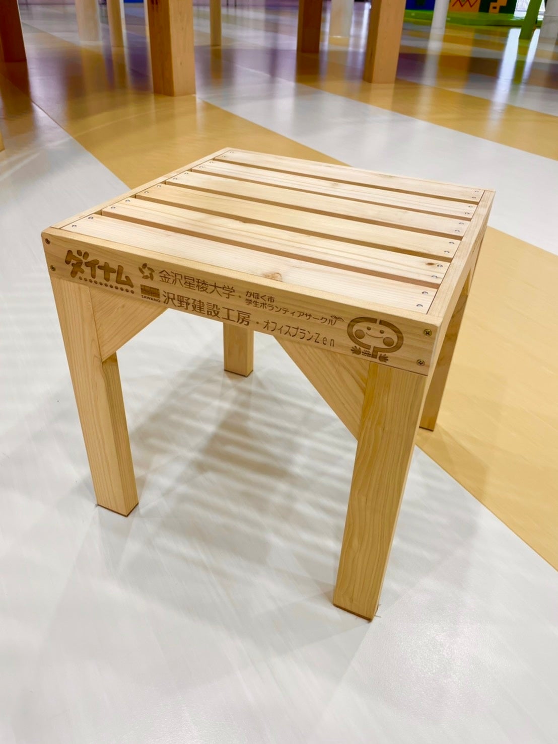 この度は、地域の小学校・企業の皆さまのご協力により、手づくりの椅子を寄贈いただきありがとうございました。今回の取り組みで色々な方々と力を合わせることができると学びましたので、地域の施設としてスタッフ一同今後も活かしていきたいです。ダイナム様には今回のプロジェクトが実現できたこと、あらためて感謝申し上げます。