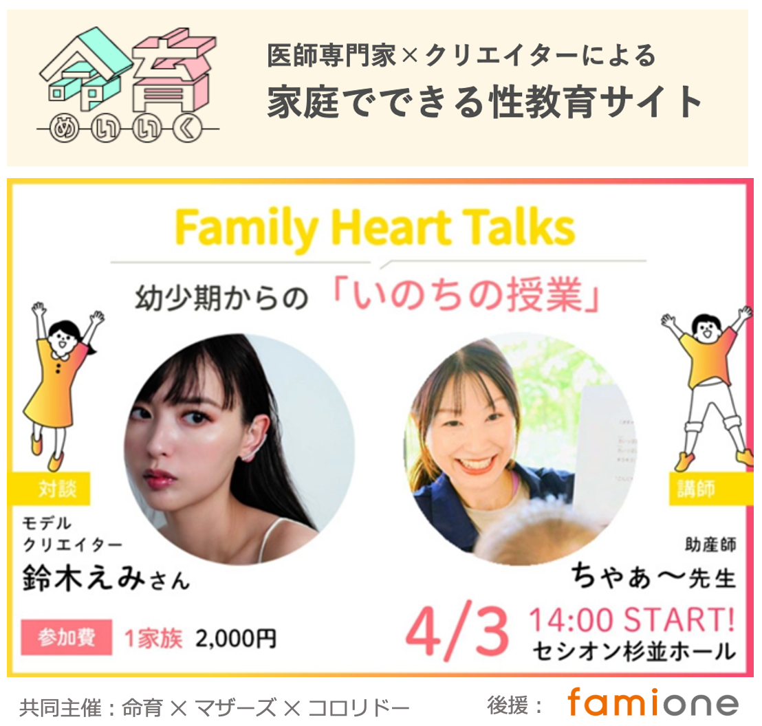 家庭でできる性教育サイト「命育」等の主催による、リアルイベント「Family Heart Talks」をファミワンが後援いたします