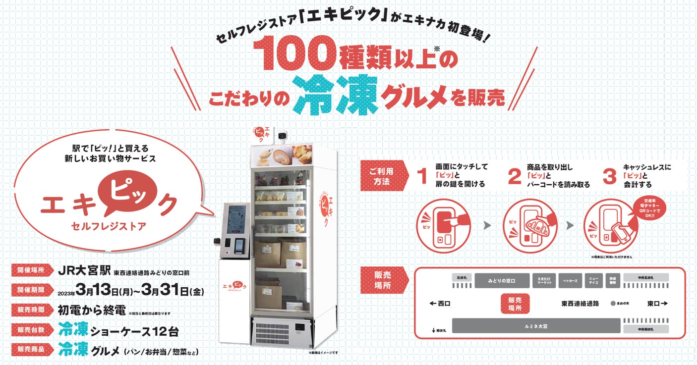 駅で「ピッ!」と買える新しいお買い物サービスセルフレジストア「エキピック」がJR大宮駅のエキナカに初登場