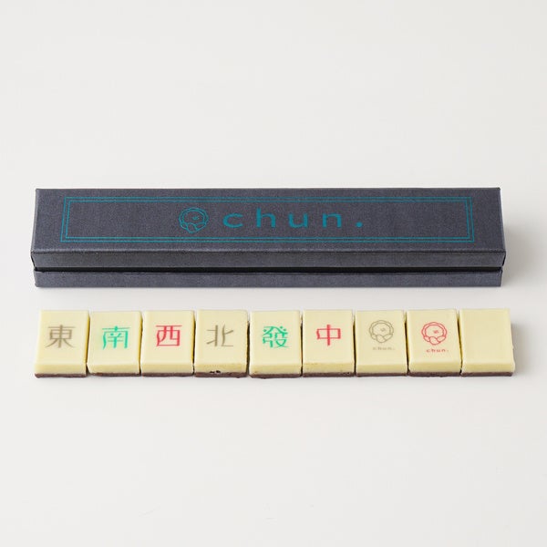 ‟まるで本物の麻雀牌”な生チョコレートです。麻雀がお好きな方のみならず、チョコレートや甘いものがお好きな方にもお楽しみいただける商品です。麻雀カフェ『chun.』のロゴを箔押しした高級感のあるパッケージに入れてお届けいたします。