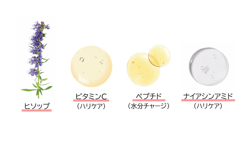 POINT1:フランス産ヒソップエキス(※2)とビタミンC(※4)配合で健やかな透明肌(※3)へ