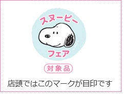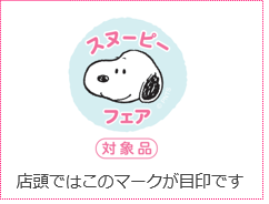 4月28日(金)から5月25日(木)までの期間中、下記のマークがついている対象商品を含む5,500円(税込)以上ご購入いただいた方に、「スヌーピー トートバッグ」をプレゼントいたします。