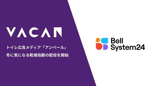 AIとIoTを活用してムダな「待つ」をなくすサービスを提供するスタートアップ、株式会社バカン(本社:東京都千代田区、代表取締役:河野剛進、以下「バカン」)は、株式会社ベルシステム24(本社:東京都港区、代表取締役 社長執行役員:梶原浩、以下「ベルシステム24」)と提携し、トイレ広告メディア「アンベール」にて、乾燥指数の配信を開始いたします。
