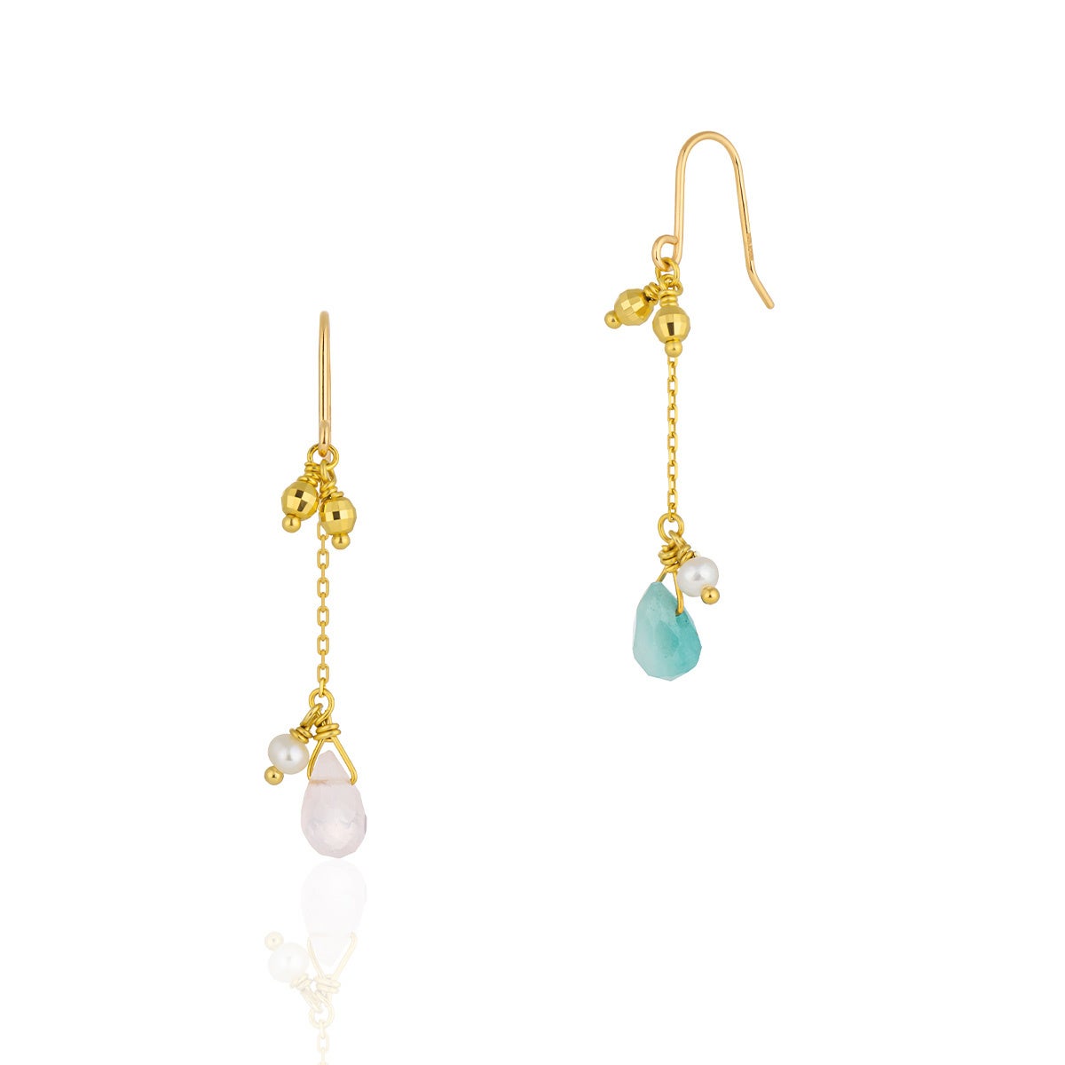 SV(YGc)+K10YG(Post) Pierced Earrings / Rose Quartz / Amazonite / Pearl ¥17,600