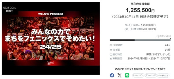 三遠ネオフェニックス『みんなの力でまちをフェニックスでそめたい!2024-2025』のクラウドファンディング、目標を251%達成して終了