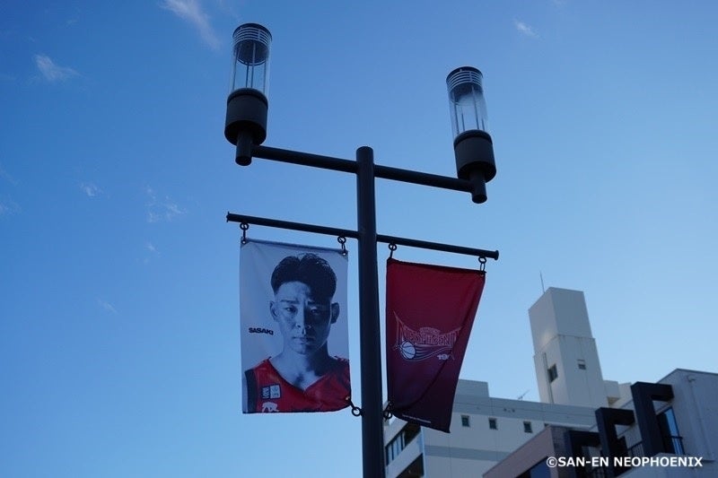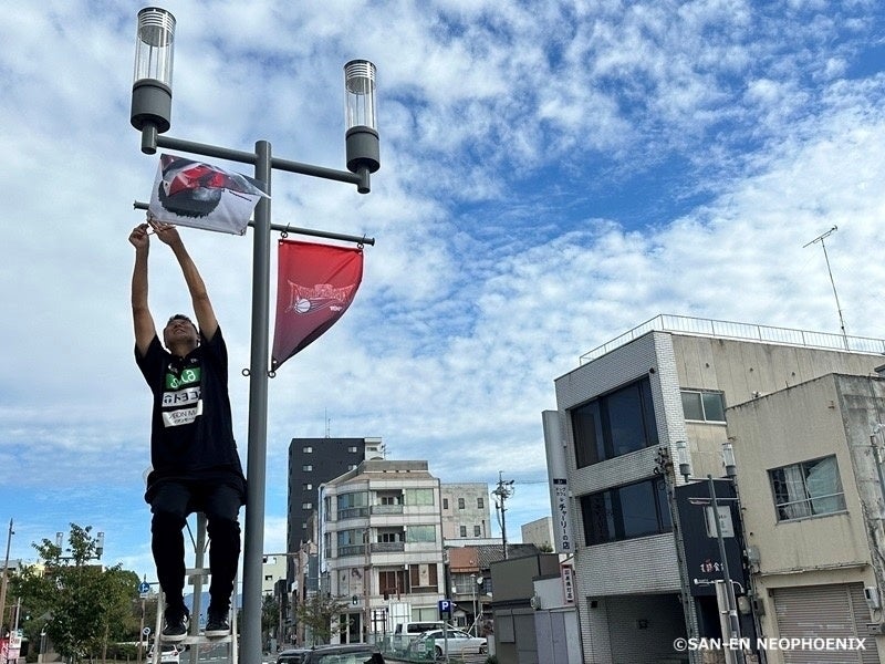本プロジェクトにてご支援いただいた支援金をもとに、早速10月10日に豊橋駅前通りにチームフラッグの掲出を開始しました。このプロジェクトを通じて、昨シーズンに続き、三遠フェニックスをより身近に感じていただき、地域の皆様や応援に訪れたブースターの皆様に笑顔と明るさをもたらすことを目指しています。