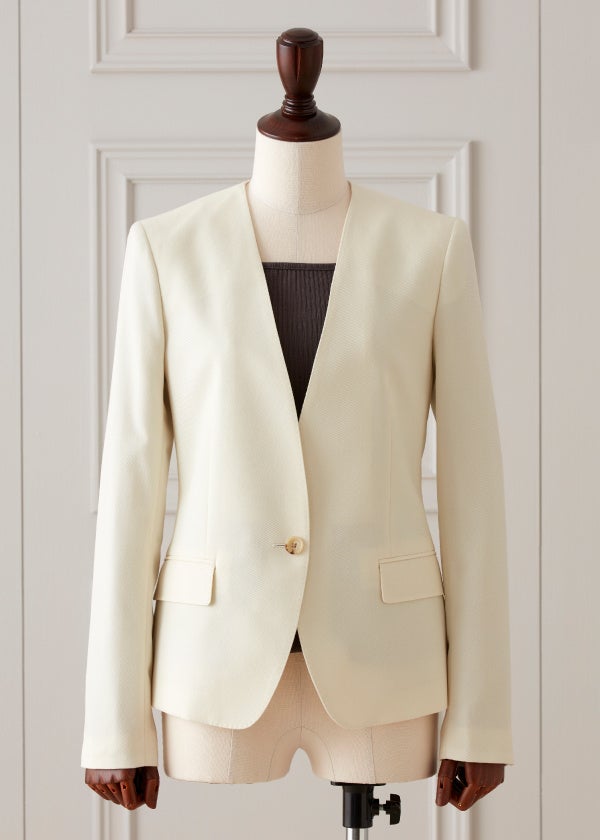 ノーカラーの1つボタンモデル。