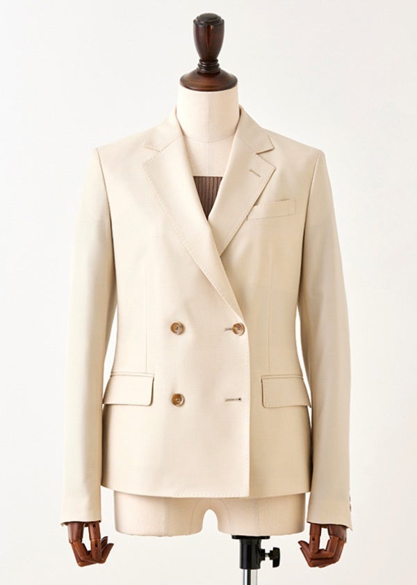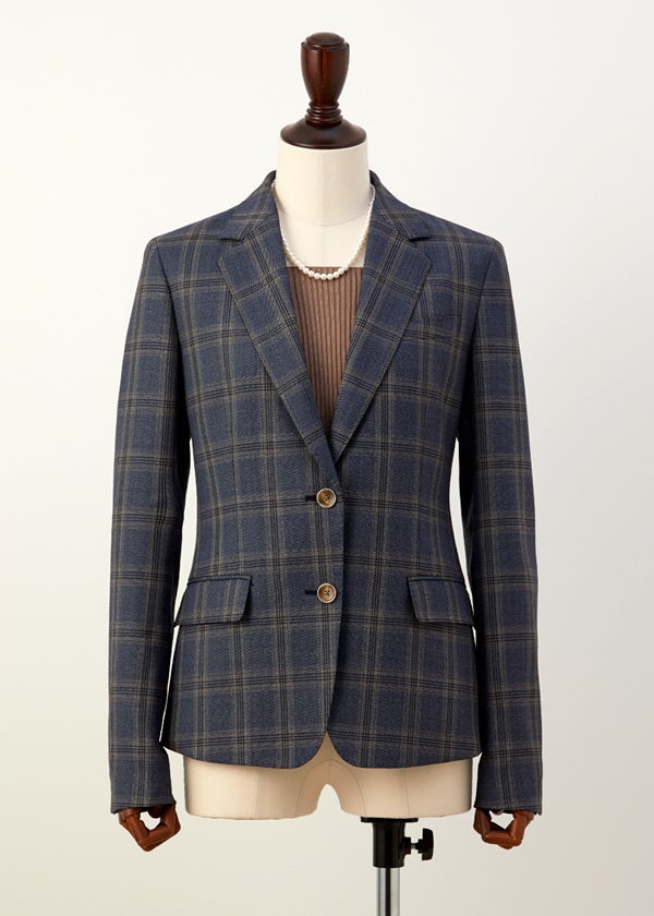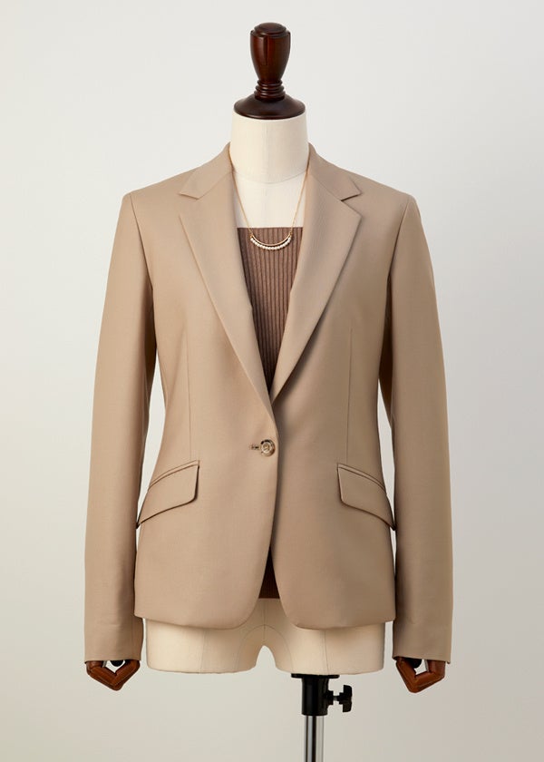 トラディショナルな2つボタンのフォルムが気品を感じさせながらも、ウエストの曲線のラインが女性らしさも引き立たせてくれます。