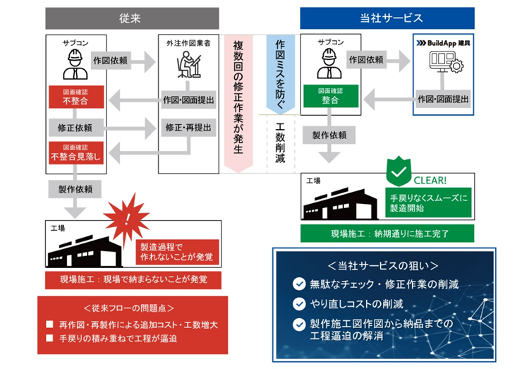 さらに、建設技能者や作図人材の不足が深刻化する中、工場ではバラ図作成担当者不足が生産工程のボトルネックとなり、繁忙期に工場稼働率を上げられない状況が続いています。