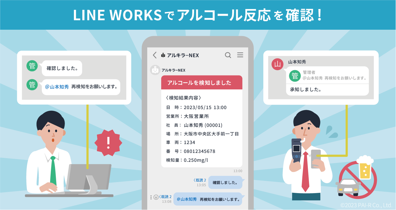 ワークスモバイルジャパン株式会社(本社:東京都渋谷区、代表取締役社長:増田 隆一、以下 ワークスモバイルジャパン)は、株式会社パイ・アール(本社:大阪府大阪市、代表取締役:安田 功:、以下 パイ・アール)が提供するクラウド型アルコールチェッカー「アルキラーNEX」と、ビジネスコミュニケーションツール「LINE WORKS」がアプリディレクトリ連携を開始したことをお知らせいたします。
